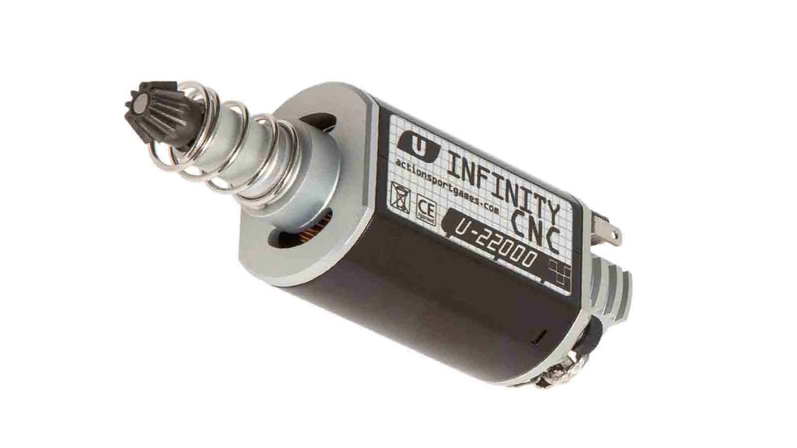 Мотор – коллекторный электрический двигатель постоянного тока. Сам располагается вне гирбокса, но крепится к нему за счет промежуточных деталей, вал двигателя находится внутри гирбокса и раскручивает шестерни. Чаще всего располагается в пистолетной рукояти привода.
